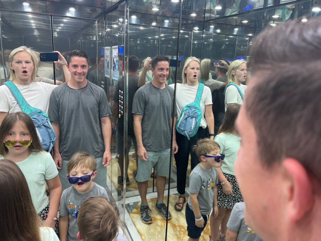 - Find fun in the small moments: One of the biggest differences about traveling with kids, is feeling like you have to keep them entertained. This can feel exhausting. Especially if the kids feel like the trip is more geared towards what the adults want to do, you will hear the “I am not having any fun” or “this is boring.” This can especially be true if you are trying to take family pictures and they don’t want to smile. We have learned to try to make fun out of the smallest of moments. When we were on a safari and had to wait to change a tire, we had the kids jump over a ditch and took “action” videos of them. In Italy, the hotel we stayed at had a cool elevator with mirrors all over it and we took funny photos in the elevator. Or my daughter’s favorite, when she was grumpy and wouldn’t take a picture in front of a historic site, I offered to do a Tik Tok dance video with her and that cheered her right up. Draw your inner kid and find something enjoyable in those mundane moments.